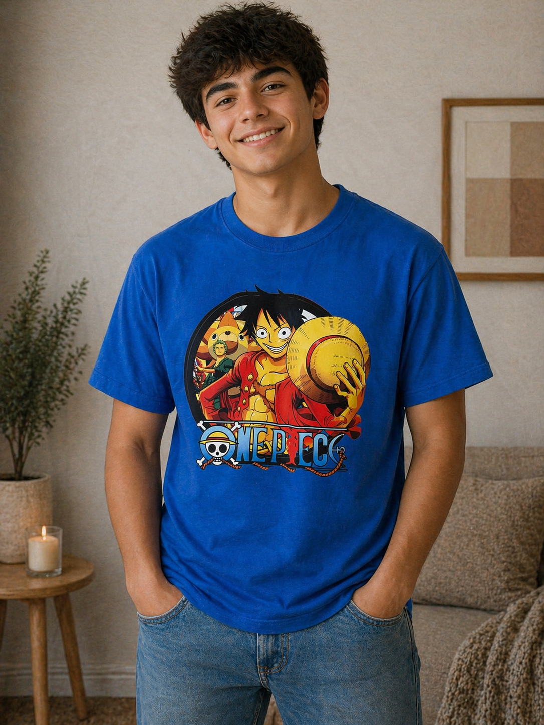 The One Piece cotton t-shirt is crafted from high-quality cotton, ensuring breathability and comfort throughout the day. Its durable fabric offers resistance to wear, making it suitable for repeated use. The shirt's classic design allows for versatile styling, contributing to a practical and timeless wardrobe staple.