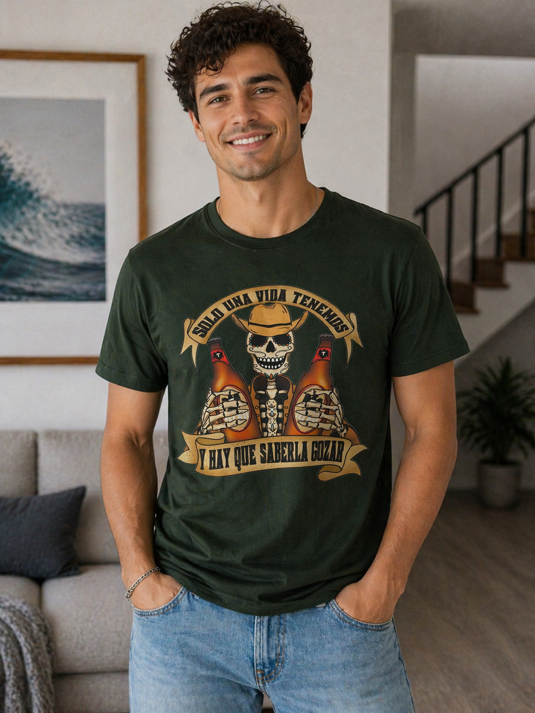 The "Solo una vida tenemos" cotton t-shirt is crafted from high-quality cotton, providing breathability and comfort. Its durable fabric ensures longevity, making it suitable for everyday wear. This t-shirt offers a relaxed fit, allowing for ease of movement, ideal for various activities.