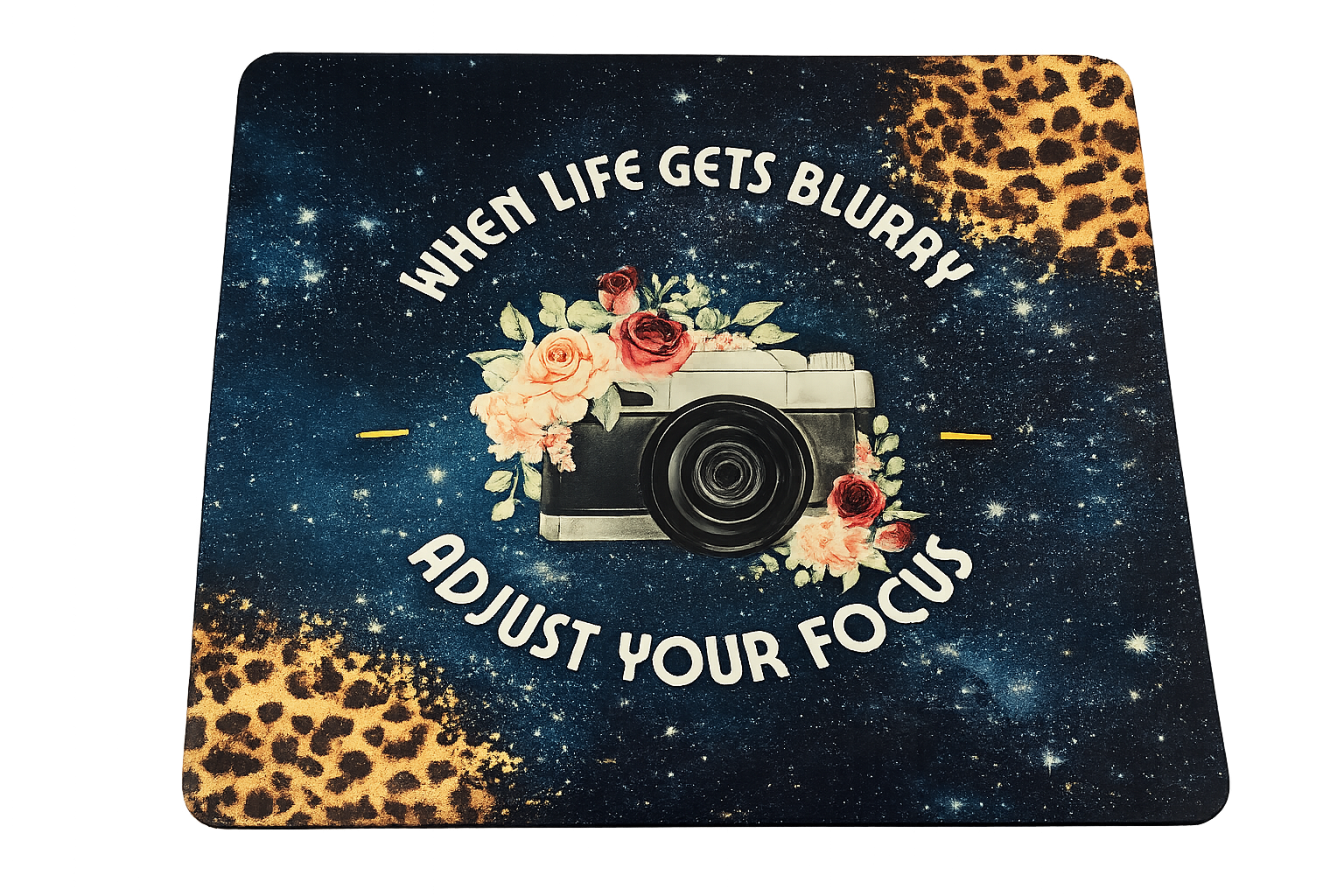 The When Life Gets Blurry Mousepad, measuring 9.45 inches by 7.87 inches with a thickness of 0.2 inches, provides an optimal surface for precise mouse navigation. Its dimensions support a comfortable workspace, enhancing productivity during extended computer use. The design contributes to a stable setup, reducing slippage and promoting accuracy.